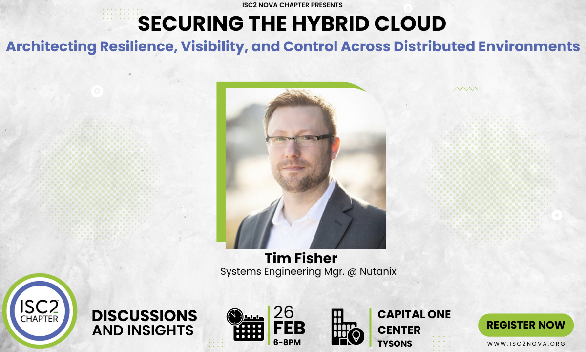 Join ISC2 Northern Virginia Chapter on Thursday, February 26th at 6:00 PM for an engaging presentation from a recognized leader in hybrid cloud security.