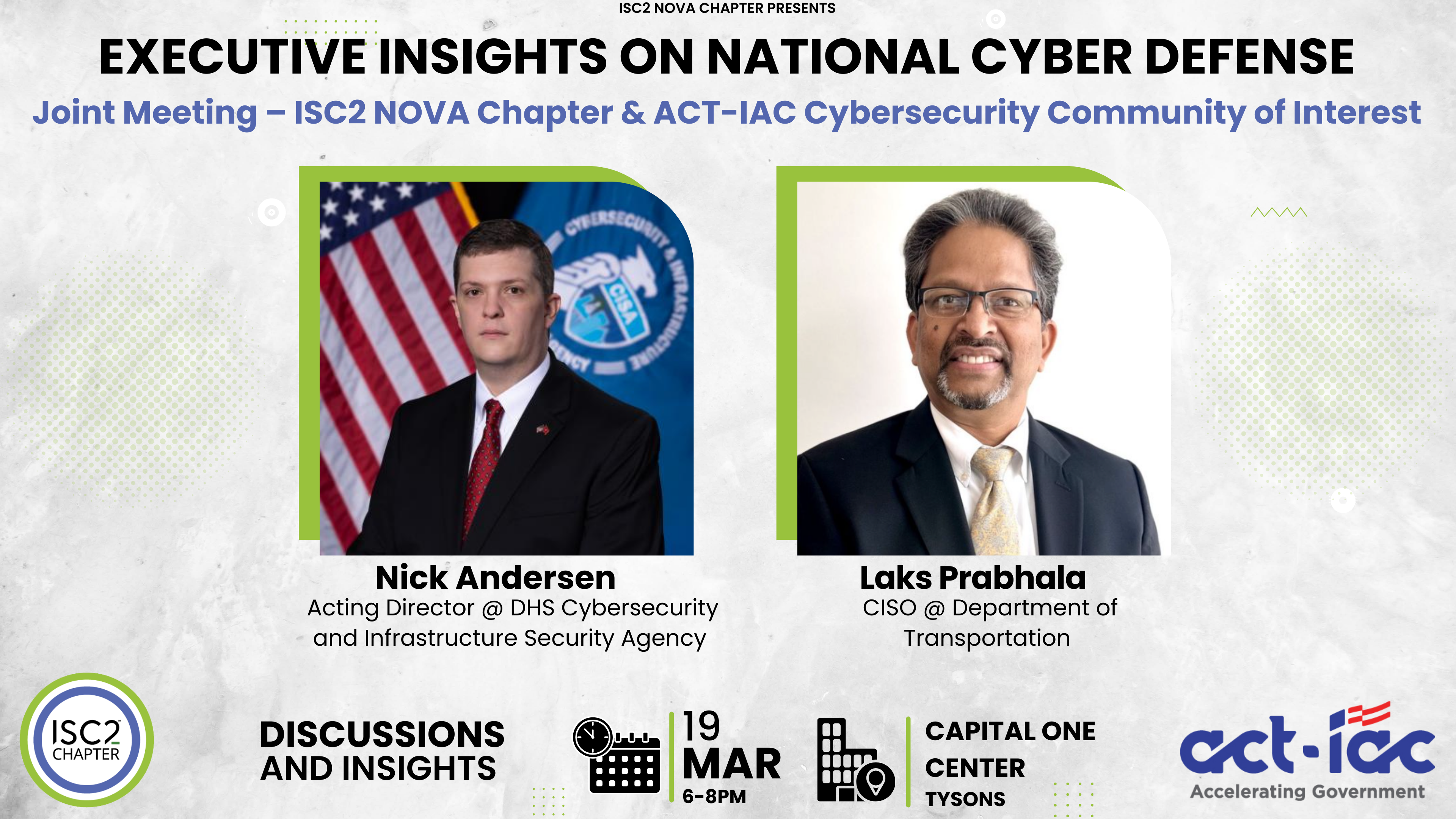 Join ISC2 Northern Virginia Chapter and ACT-IAC Cybersecurity Community of Interest (COI) on Thursday, March 19th at 6:00 PM for a special joint chapter meeting.